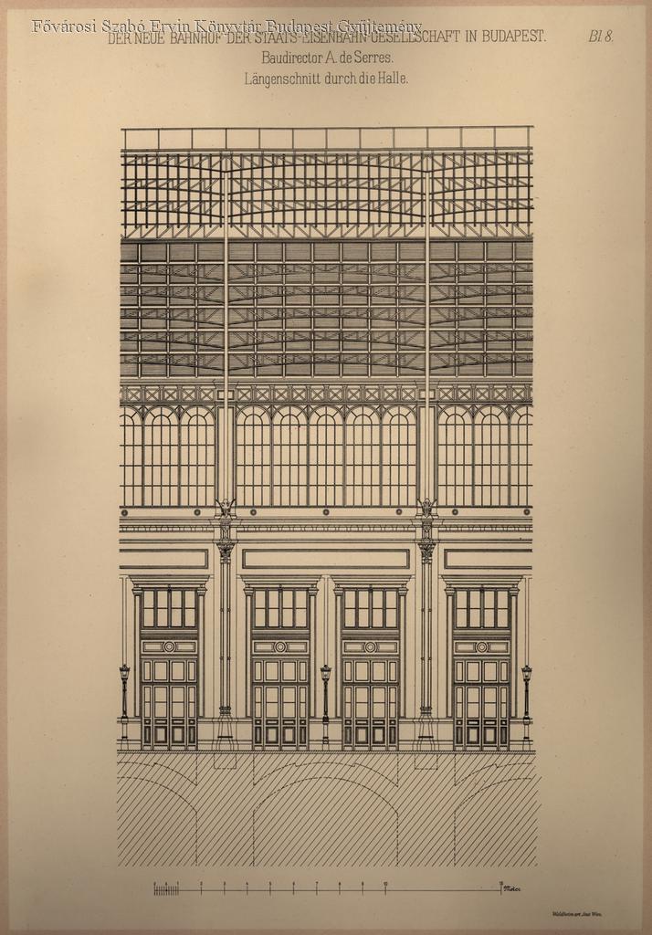 Der neue Bahnhof der Staats-eisenbahn gesellschaft in Budapest : Baudirector A. de Serres Längenschnitt durch die Halle /