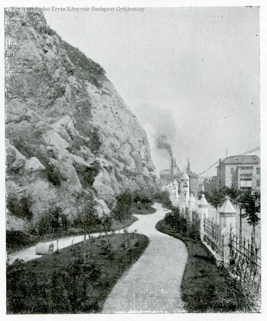 A gellérthegyi park látképe az egyik bejáró