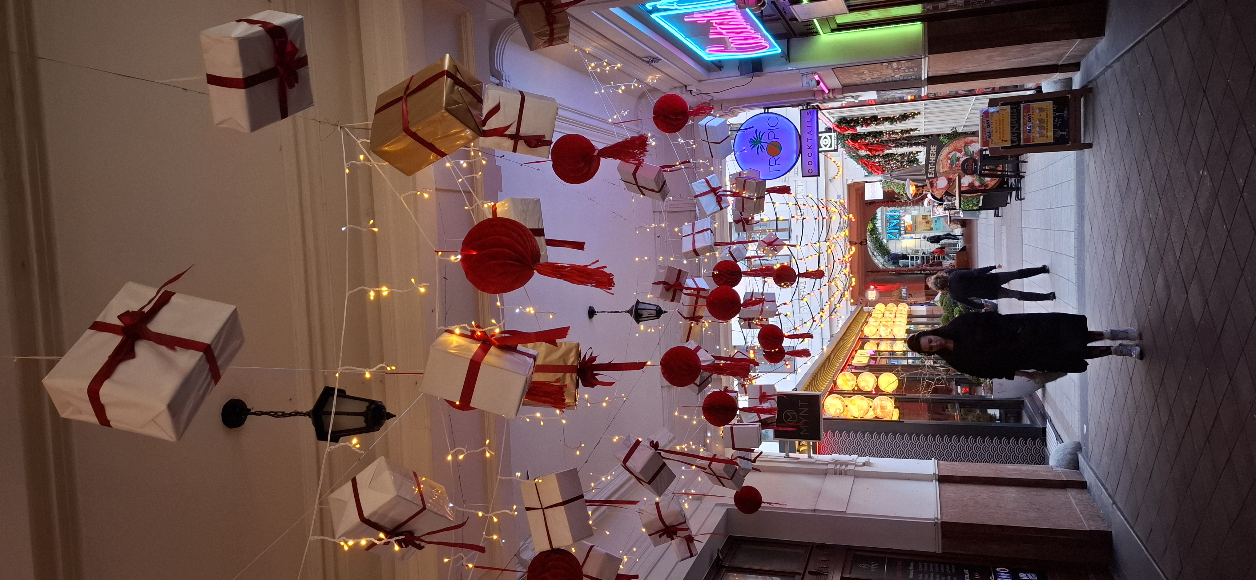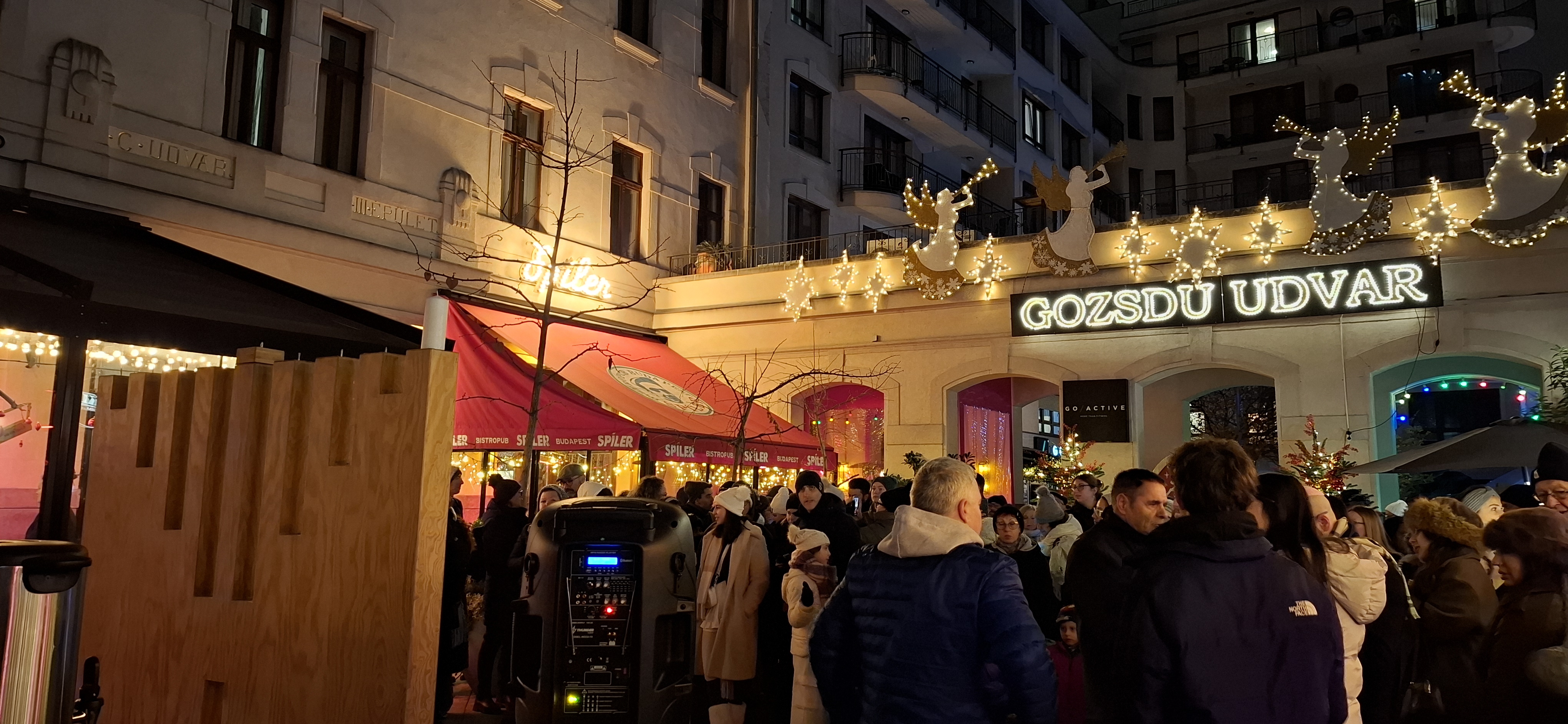 Karácsonyi angyalkák és hanukai gyertyák békésen ünnepeltek 2025 végén a Gozsdu udvarban.