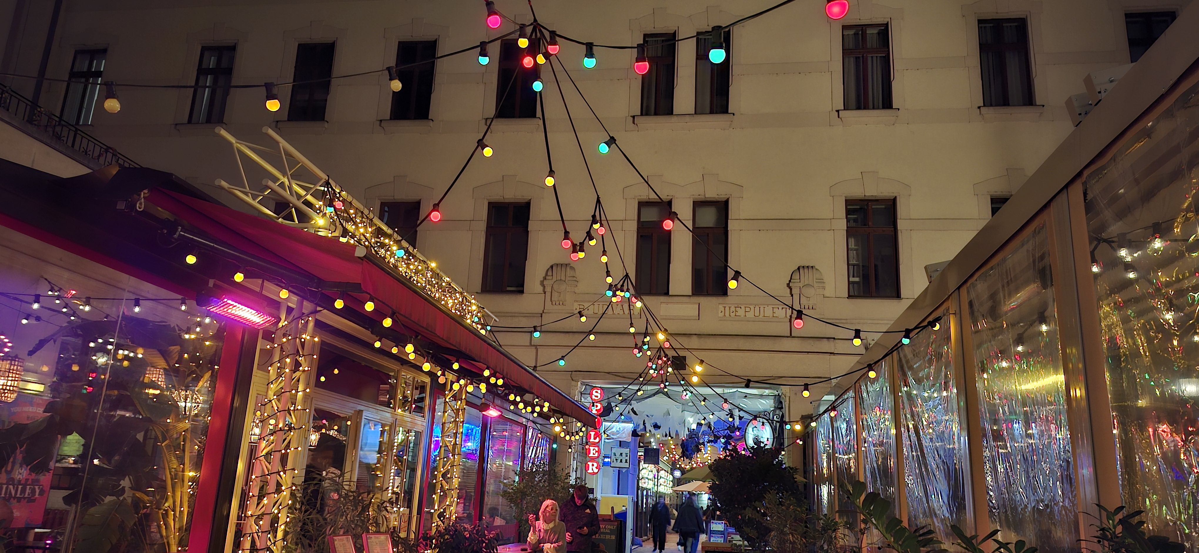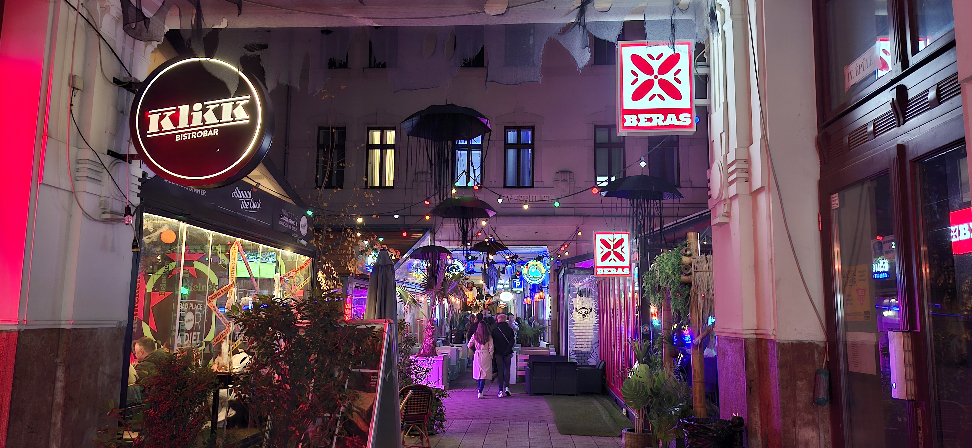 Viszont ettől függetlenül simán azt mondom: egyszer mindenkinek látni kell! Egy igazi budapesti gyöngyszem, ahol éttermek, bárok, kávézók, klubok és minden más is megtalálható. Tele van élettel, főleg esténként — szóval ha valaki szereti az ilyen nyüzsis, városi vibe-ot, az itt elemében lesz.