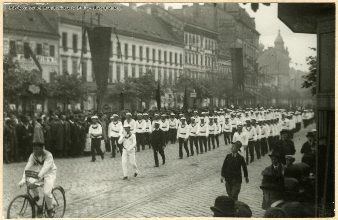 [Folyamőrség felvonulása 1919. május elsején a Károly körúton]