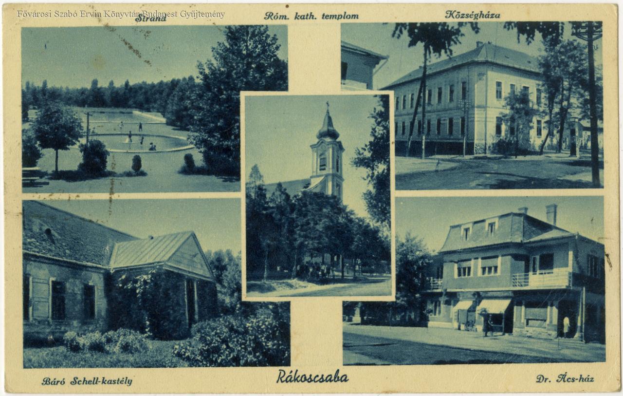Rákoscsaba strand, községháza, róm. kath. templom, Báró Schell-kastély, Dr. Ács-ház
