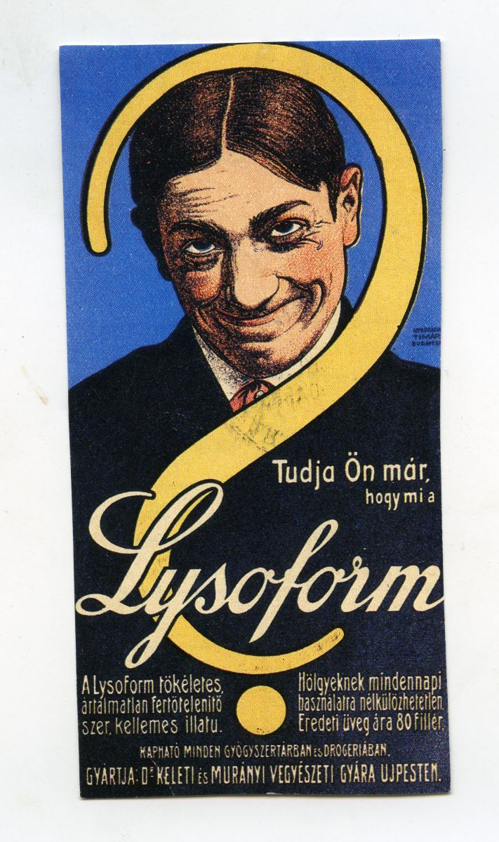 A Lysoform tökéletes, ártalmatlan fertőtlenítő szer, kellemes illatú. Hölgyeknek mindennapi használatra nélkülözhetetlen. Eredeti üveg ára 80 fillér. Kapható minden gyógyszertárban és patikában.