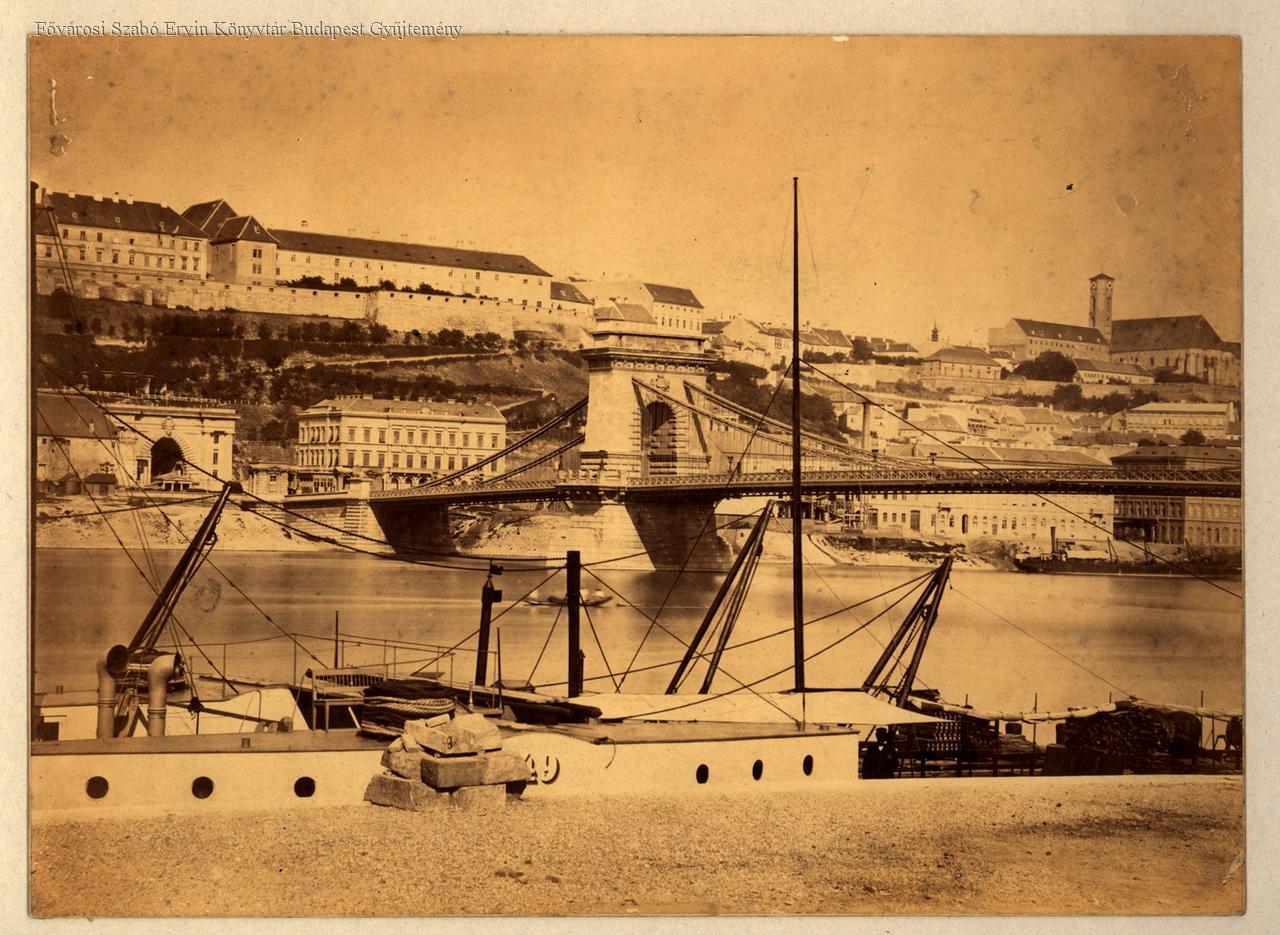 [Lánchíd és a budai oldal látképe a régi Mátyás-templommal]