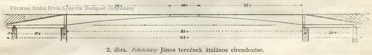 Hosszmetszet (oldalnézet), a főbb méretek feltüntetésével. Meg nem valósult terv