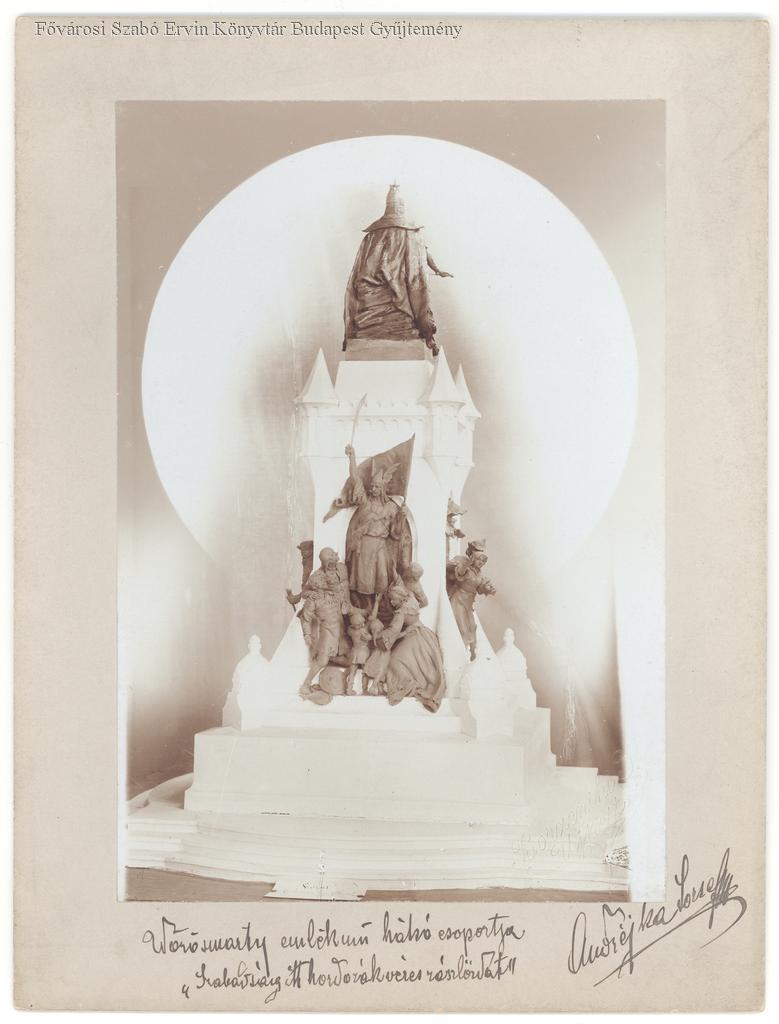 Vörösmarty emlékmű hátsó csoportja Andrejka Józseftől, 1902. szeptember "Szabadság itten hordozák véres zászlóidat" /