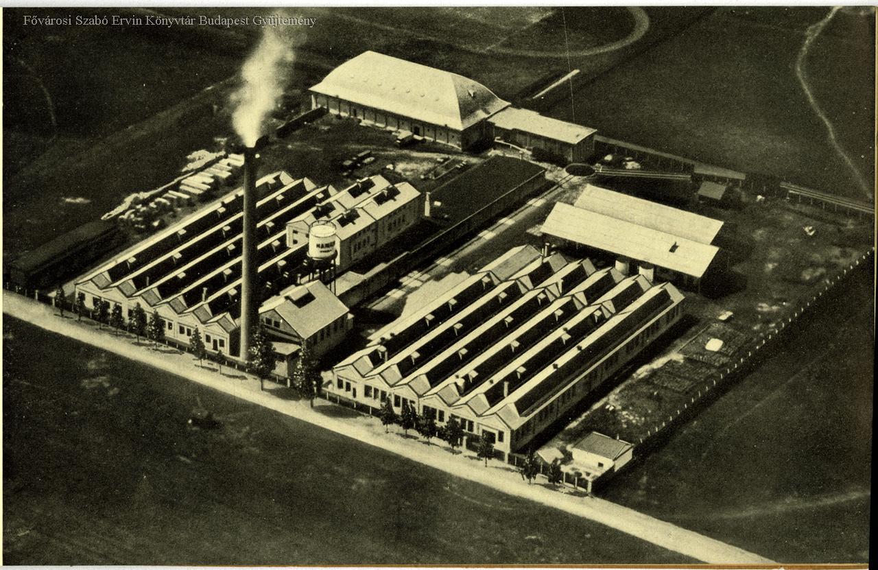 Luftansicht der Industrieanlagen der "Hangya" Vue aérienne des établissements internels de la "Hangya = The industrial plants of the Hangya seen from the air = Panorama dell'officina industriale della Hangya = [A Hangya iparvállalatának látképe légifelvételről]