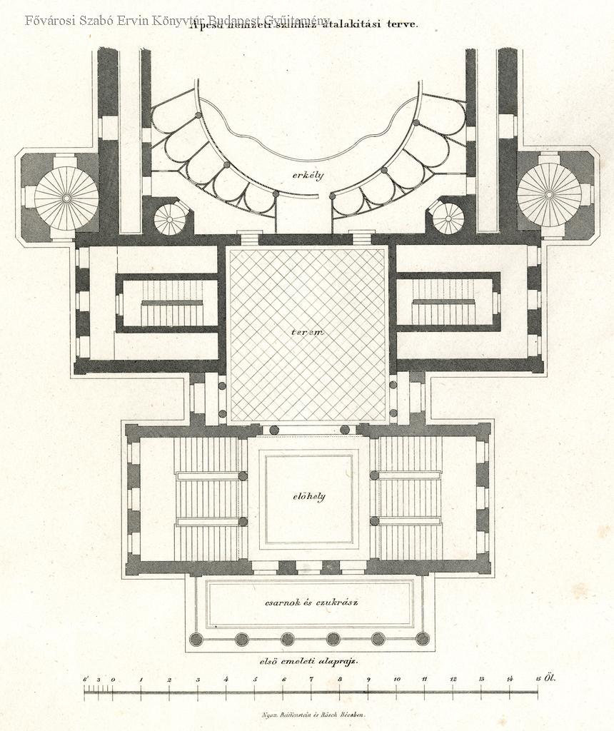 A pesti Nemzeti Színház átalakítási terve, első emeleti alaprajz