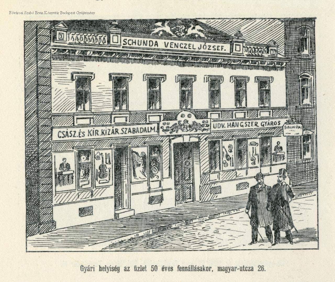 hangszerkészítés, cimbalom, homlokzat, cégtábla, 1898