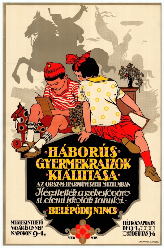 | dc.description | Budapesti elemi iskolás tanulók által készített háborús gyermekrajzok ingyenes kiállítása az Országos Magyar Iparművészeti Múzeumban. A kiállítás minden nap megtekinthető volt. A plakát két rajzoló gyermeket ábrázol, a háttérben pedig lovas katonák sziluettje látható. | |