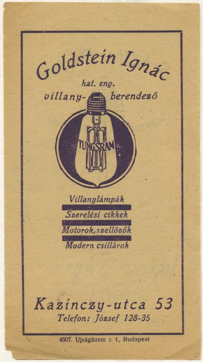 szaküzlet, üzlet, elektromosság, műszaki cikk, világítás, izzólámpa, égő, reklámnyomtatvány, kisnyomtatvány, aprónyomtatvány, számolócédula