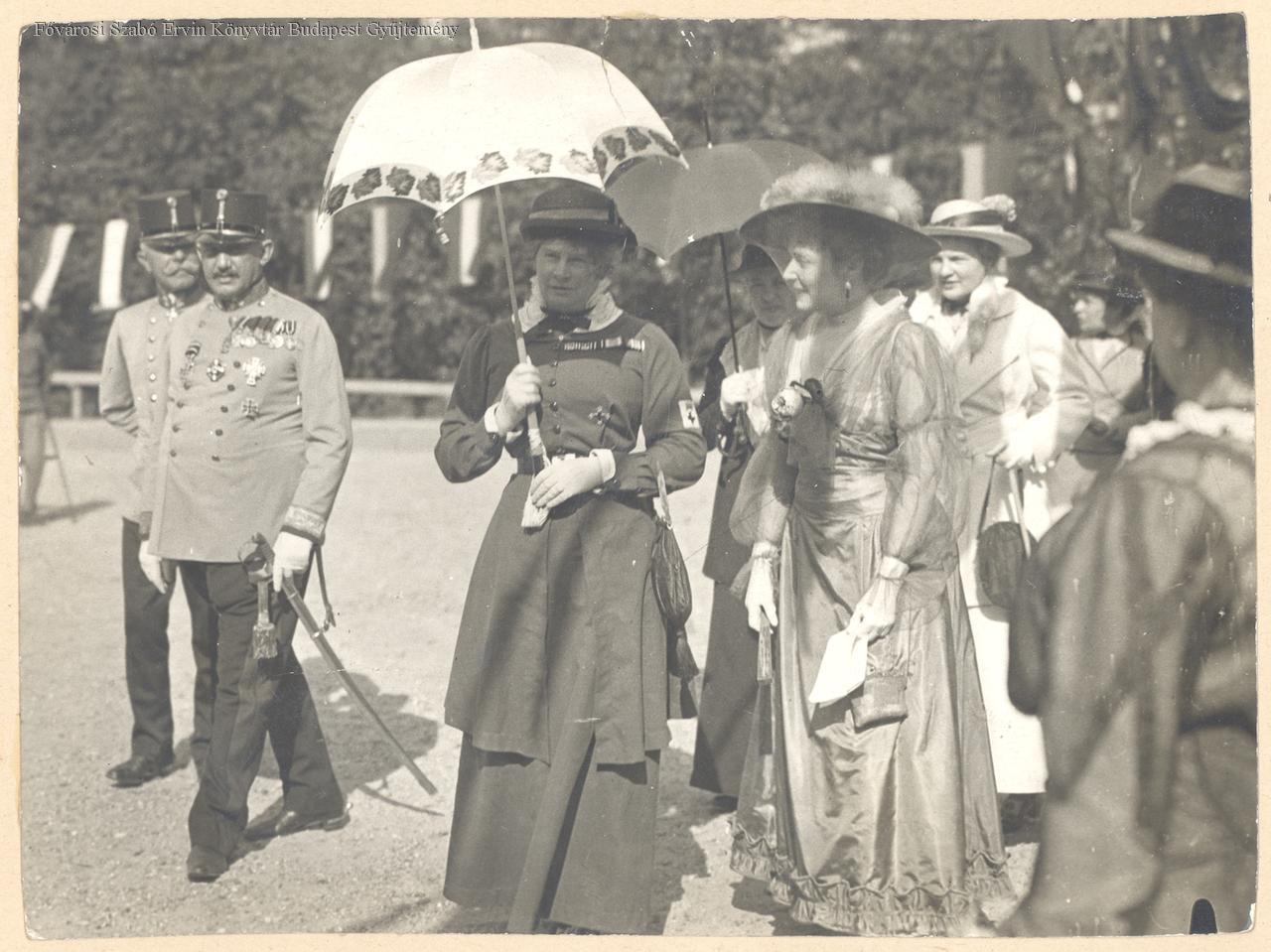 [Lábadozók üdülőtelepe a Margitszigeten] [Auguszta főhercegasszony vöröskeresztes öltözetben megérkezik az ünnepélyes megnyitásra]