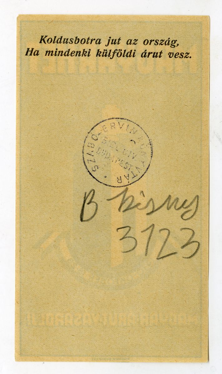 iparvédelem, kereskedelempolitika, kampány, 1930, reklámnyomtatvány, kisnyomtatvány, aprónyomtatvány, számolócédula