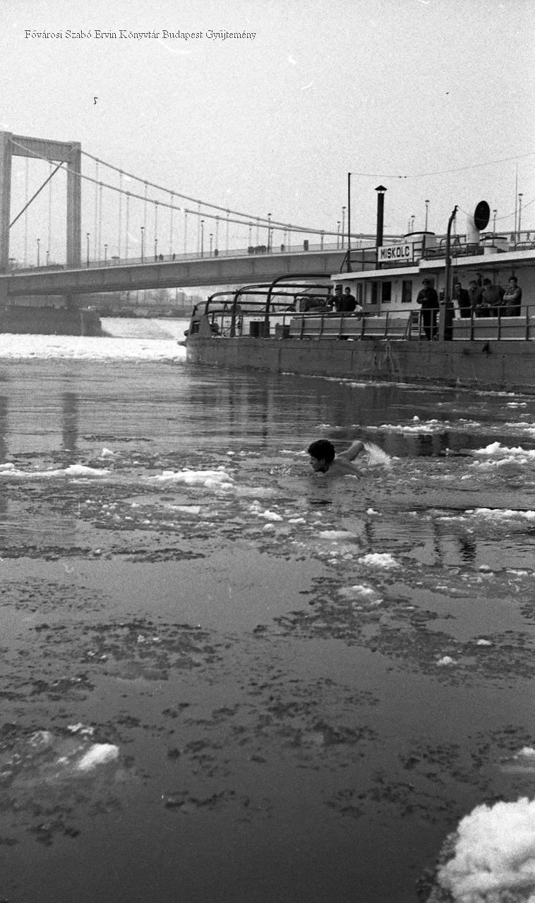 1967. január 12-én Schirilla György, a Vasas sportolója tizedik alkalommal ússza át a jeges Dunát. Az Erzsébet híd pesti hídfőjétől a Szabadság hídig úszott