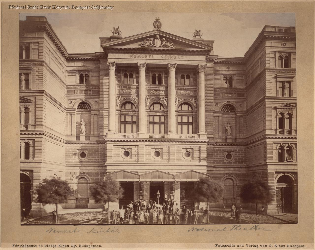 színház, bérház, szobor, épületkép, külső felvétel, 1880-as évek
