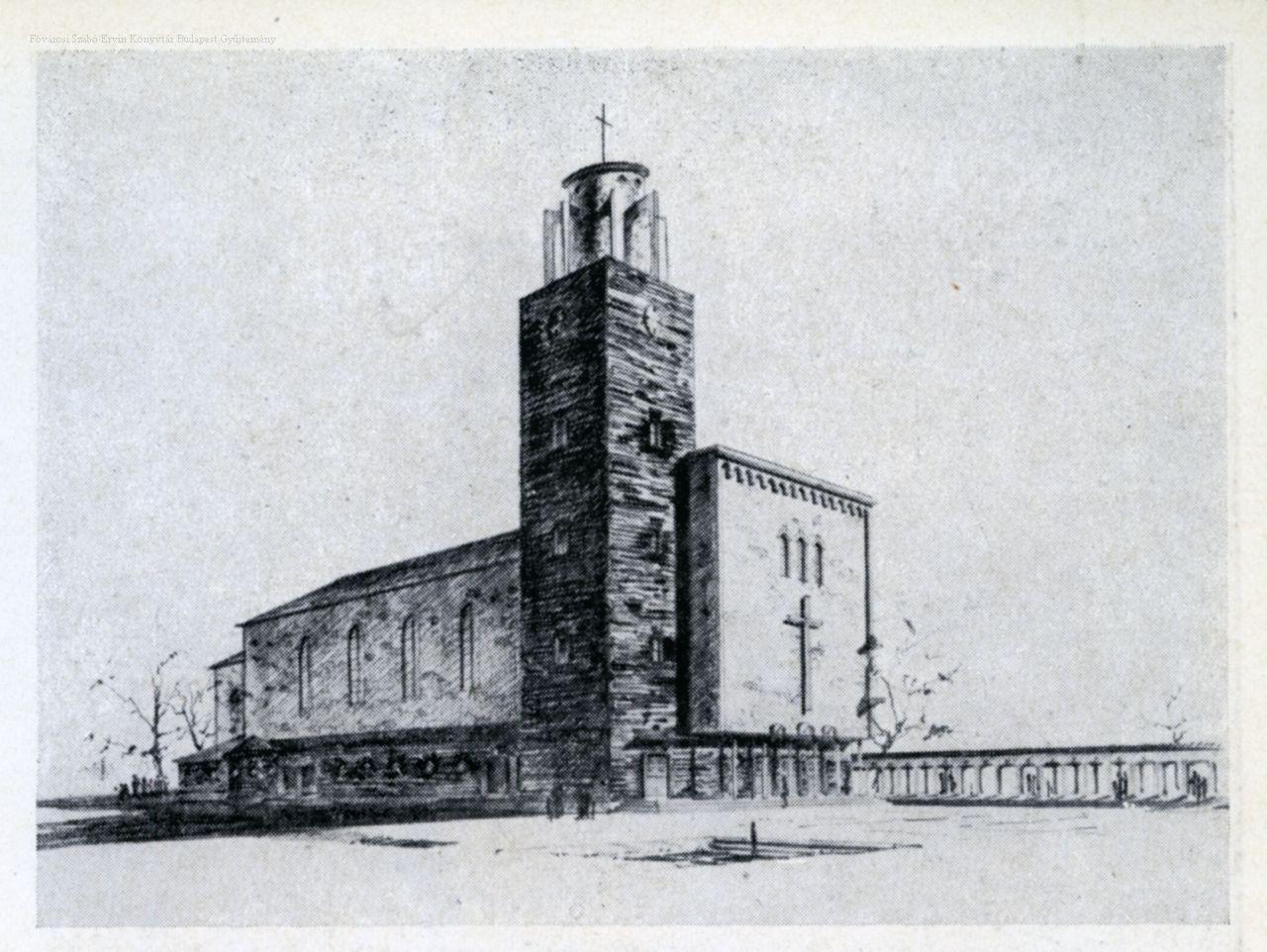 A Páduai Szent Antal plébániatemplom tervpályázata Vaits Sándor megvásárolt pályaművének távlati képe és alaprajza