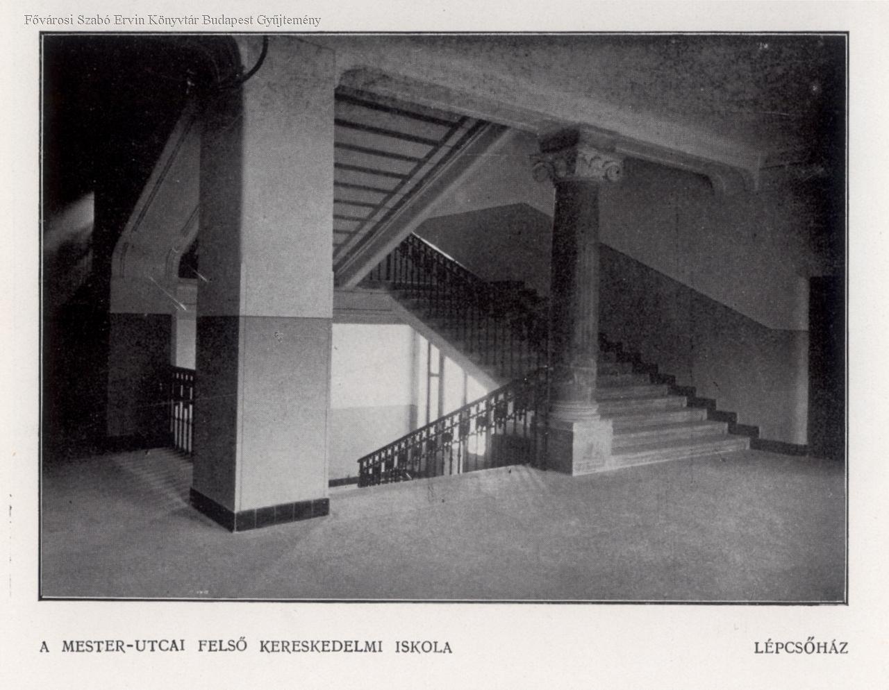 lépcsőház, iskola, középfokú oktatás, szakképzés, belső felvétel, épületkép, 1913