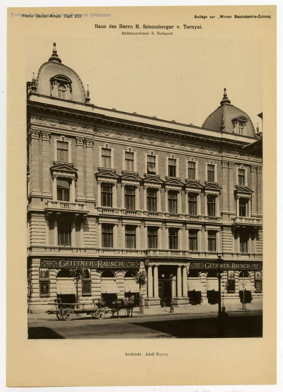 Haus des Herrn H. Schossberger v. Tornyai Andrássystrasse 8. Budapest : Architekt: Adolf Fes[!]ty