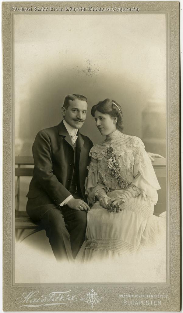 műtermi portré, emberpár képe, egészalakos kép, mérnök, házastárs, ülőbútor, 1900-as évek