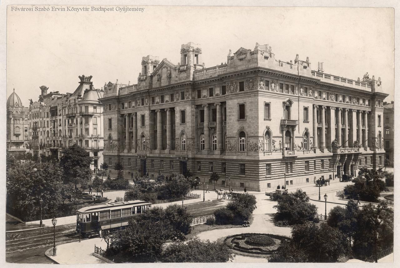 bank, székház, díszítés, park, dísznövény, villamos kocsi, közúti villamosvasút, lakóépület, látkép, 1900-as évek, 1910-es évek