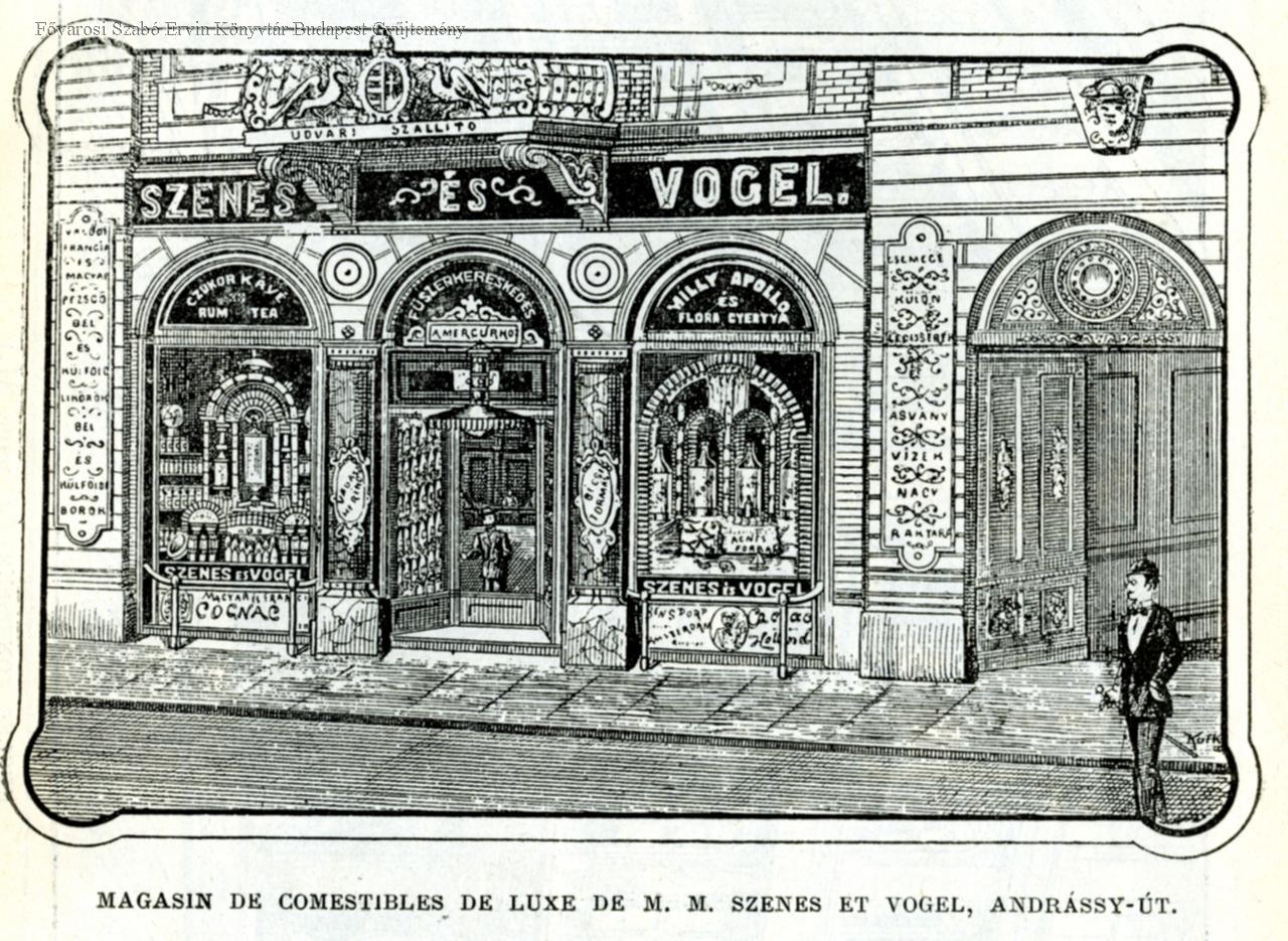 Magasin de comestibles de luxe se M. M. Szenes et Vogel, Andrássy út [Szenes és Vogel fűszerkereskedés portálja]