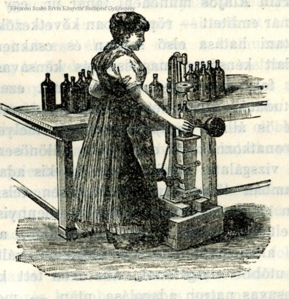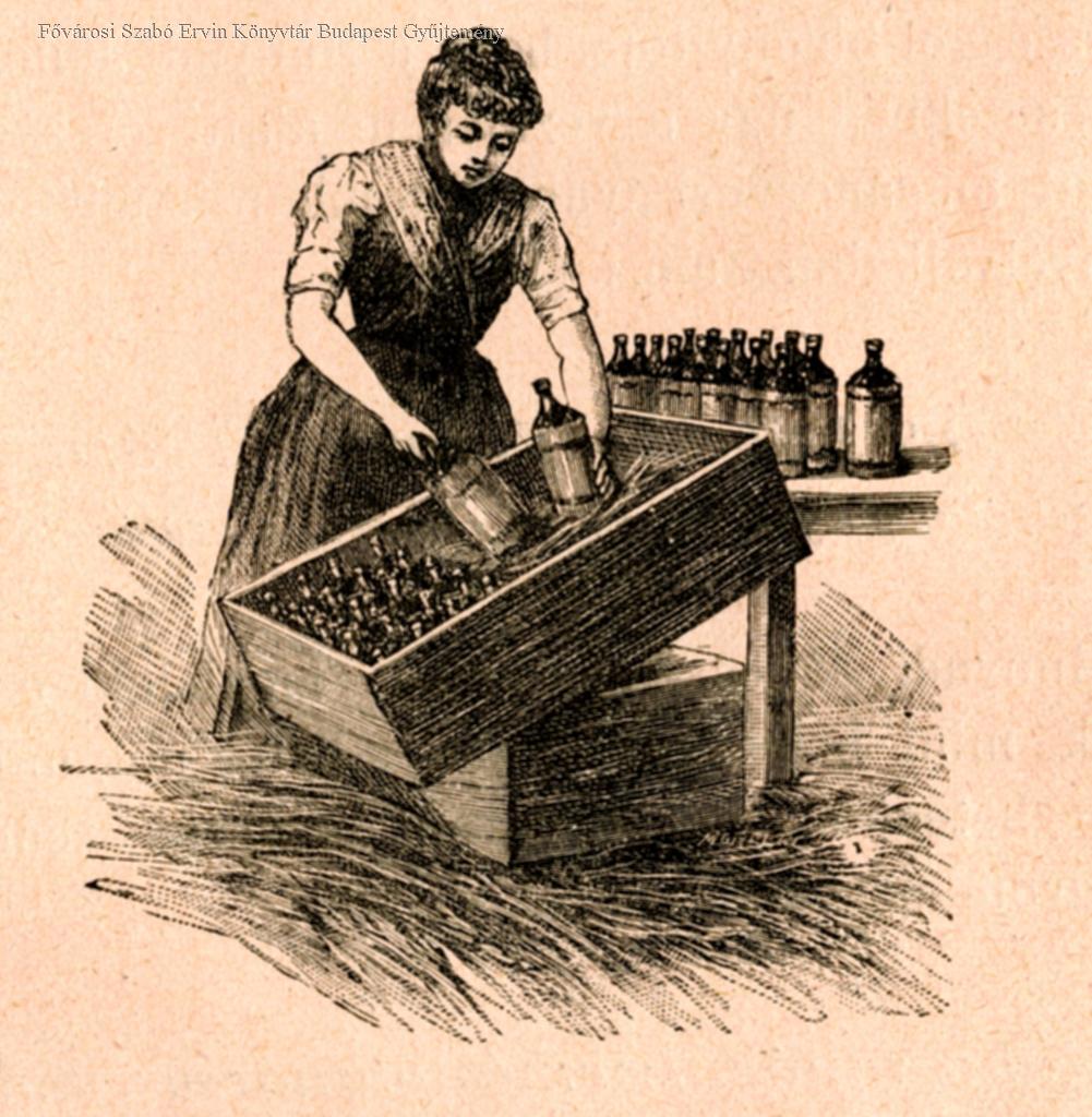 élelmiszeripar, ásványvíz, nő, csomagolás, belső felvétel, 1894