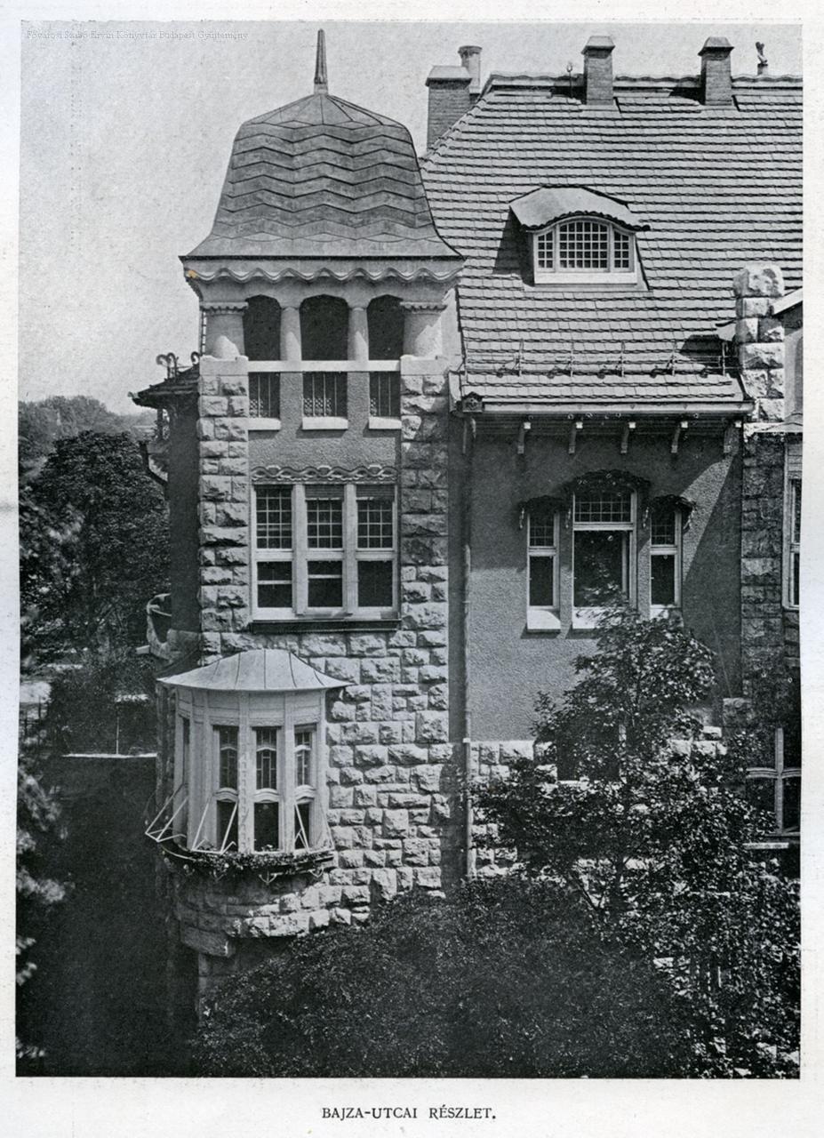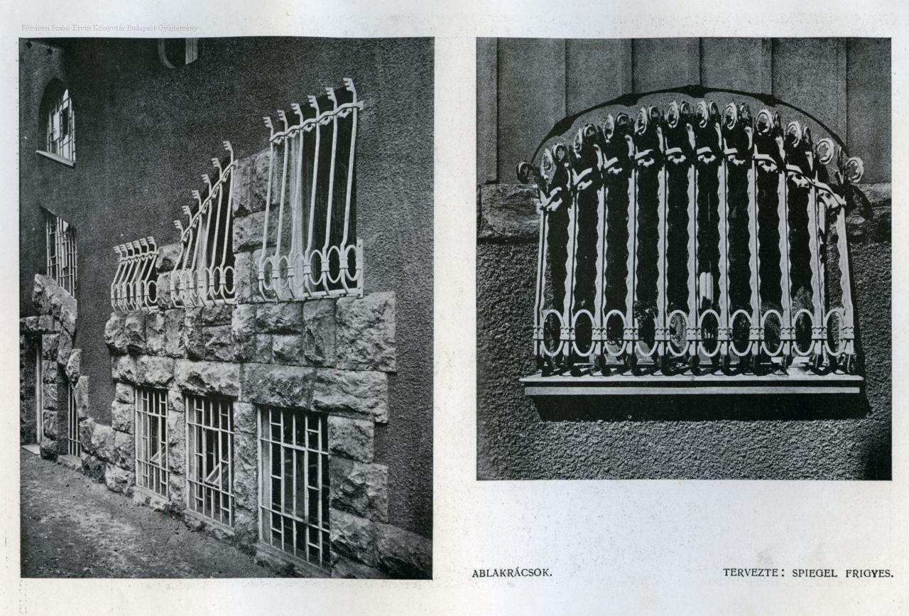 Kerti bejárat; Bajza utcai homlokzat; Andrássy úti homlokzat; ablakrácsok; Bajza utcai részletek