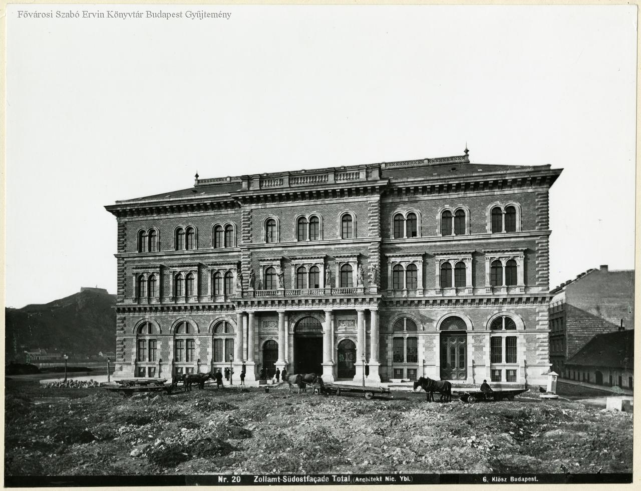 vámügy, neoreneszánsz, díszítés, tereprendezés, útburkolat, ember, lovas kocsi, épületkép, külső felvétel, 1879 körül