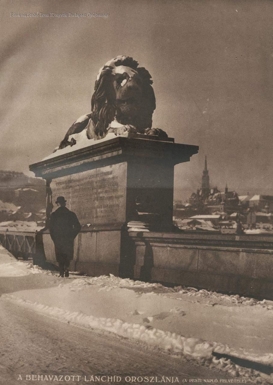 közúti híd, szobor, állatábrázolás, oroszlán, hó, külső felvétel, 1925