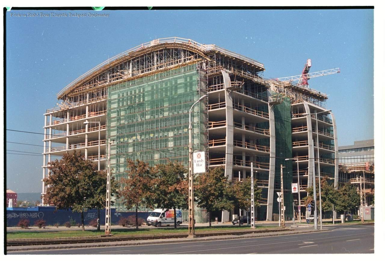 külső felvétel, épületkép, utcakép, irodaház, építés, daru, állvány, 2000-es évek