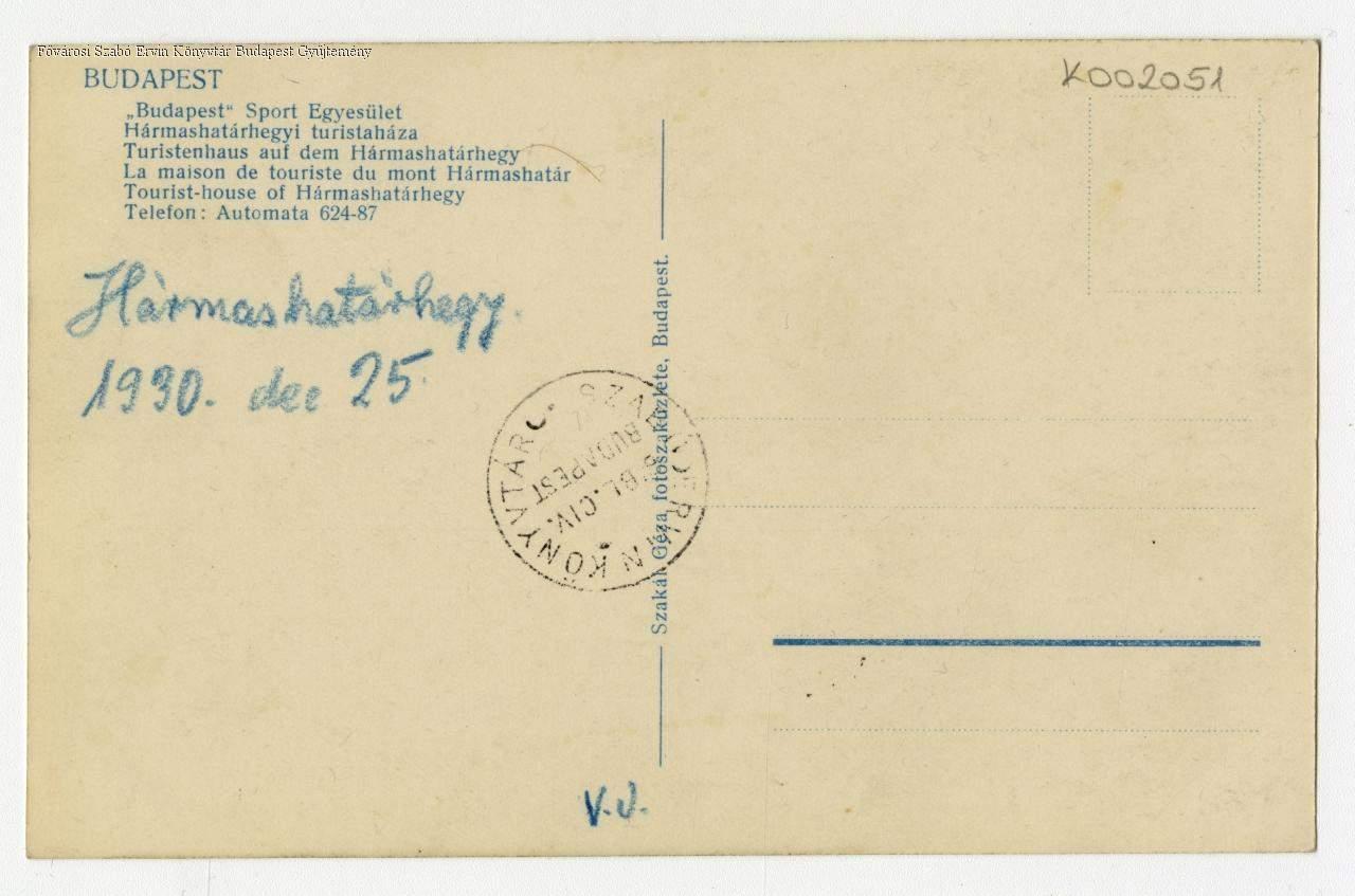 Budapest "Budapest" Sport Egyesület Hármashatárhegyi turistaháza = Turistenhaus auf dem Hármashatárhegy = La maison de touriste du mont Hármashatár = Tourist-house of Hármashatárhegy