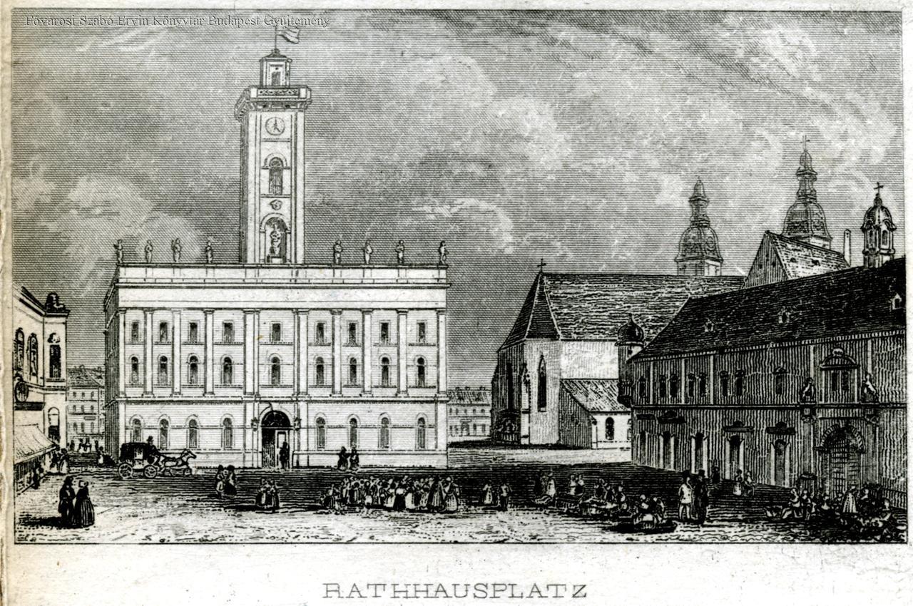 1845, utcakép, városháza, piaristák, iskolaépület, kolostor, piac, 1850-es évek