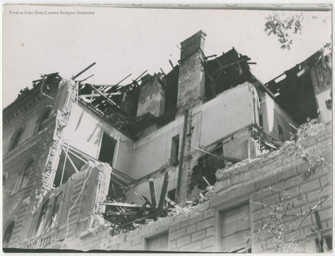 lakóépület, kémény, tetőszerkezet, bombázás, háborús kár, második világháború, külső felvétel, épületfotó, 1940-es évek