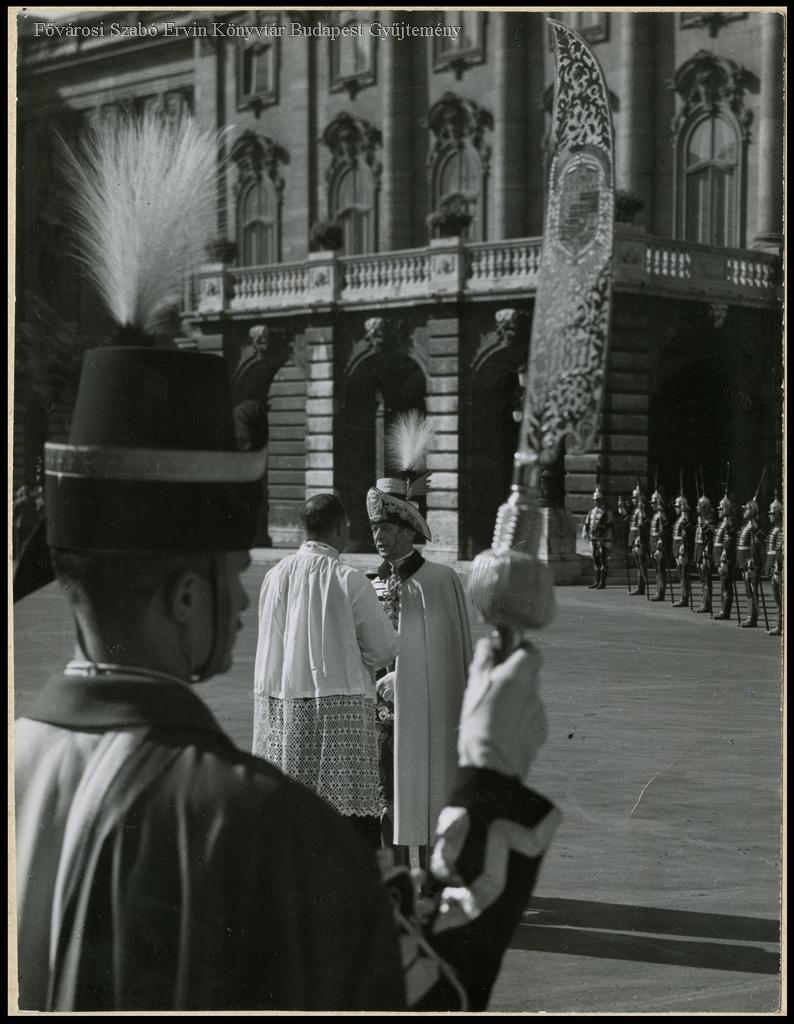 katolikus egyház, körmenet, nemzeti ünnep, augusztus 20., katolikus pap, testőr, katona, egyenruha, koronaőr, 1938, Horthy-korszak