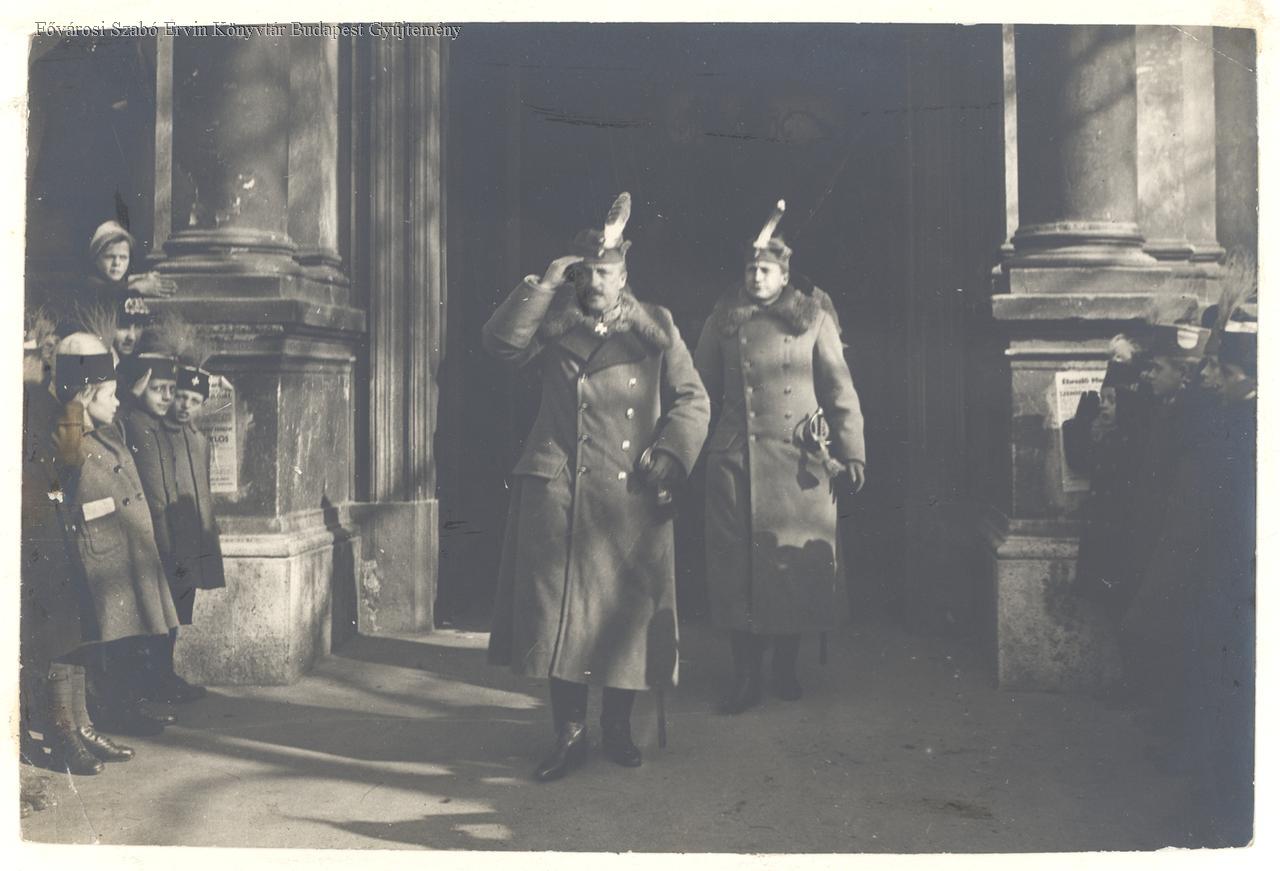 Az Ébredő Magyarok Egyesületének zászlószentelési ünnepe. József főherceg és József Ferenc főherceg távoznak a Józsefvárosi templomból