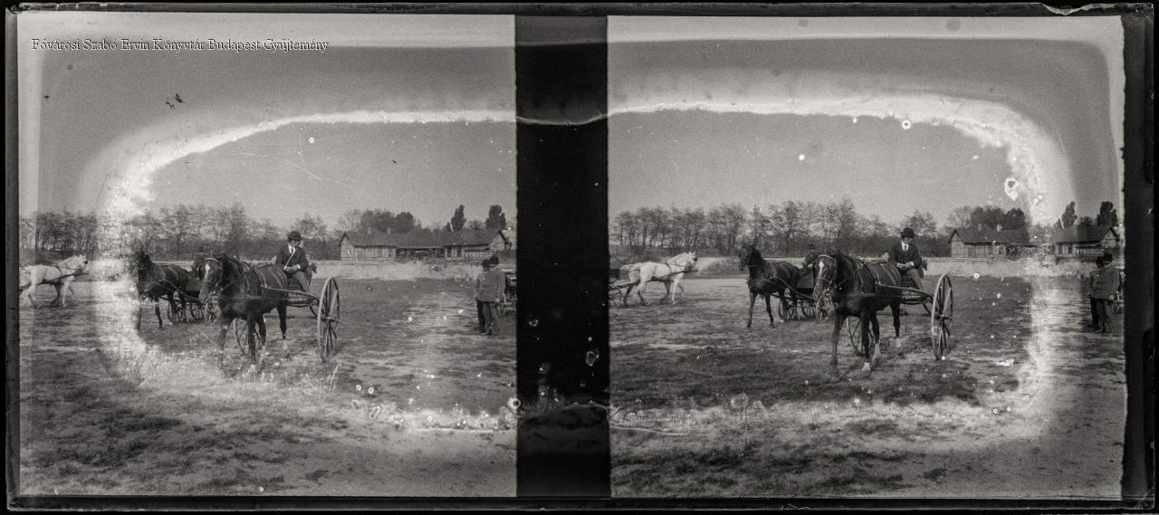 [Fogatok a lóversenypálya közelében] [Stables near the racecourse]