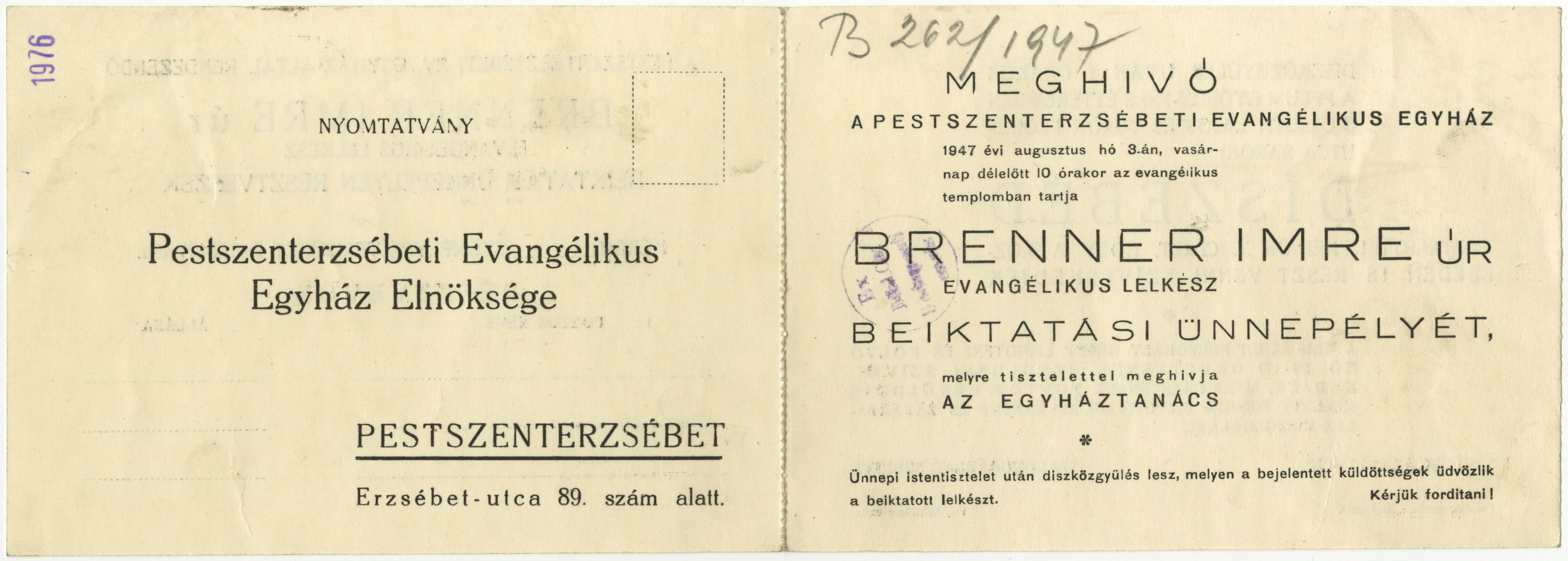 NYOMTATVÁNY. Pestszenterzsébeti Evangélikus Egyház Elnöksége