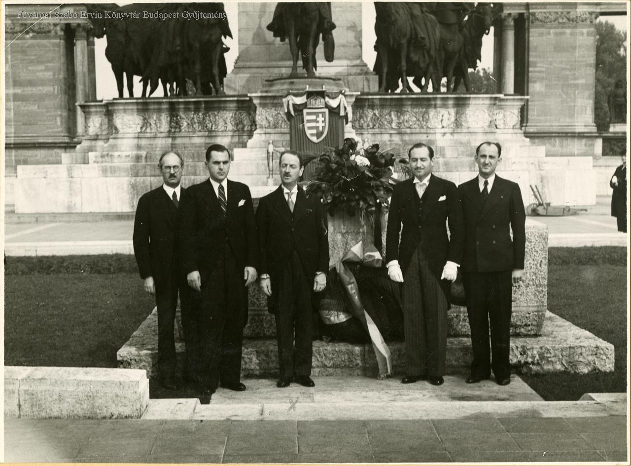polgármester, külkapcsolat, küldöttség, koszorú, férfi, szobor
