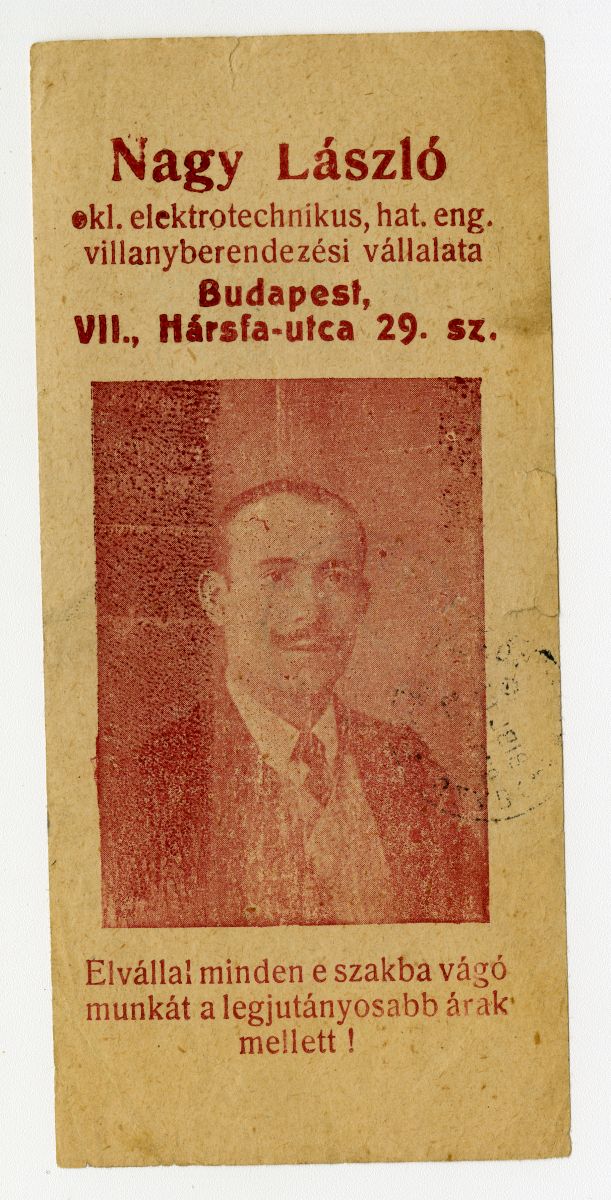 villamossági szerelés, elektroműszerész, szakipari foglalkozás, villanyszerelő, férfi, fénykép, reklámnyomtatvány, kisnyomtatvány, aprónyomtatvány, számolócédula