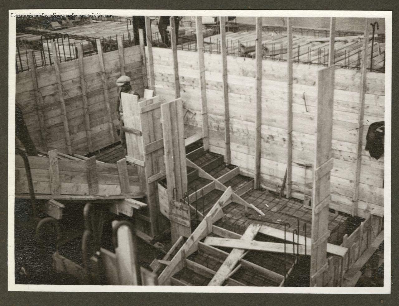 [A Fővárosi Közmunkák Tanácsa székházának építkezése] Betonvasalások, állványok /