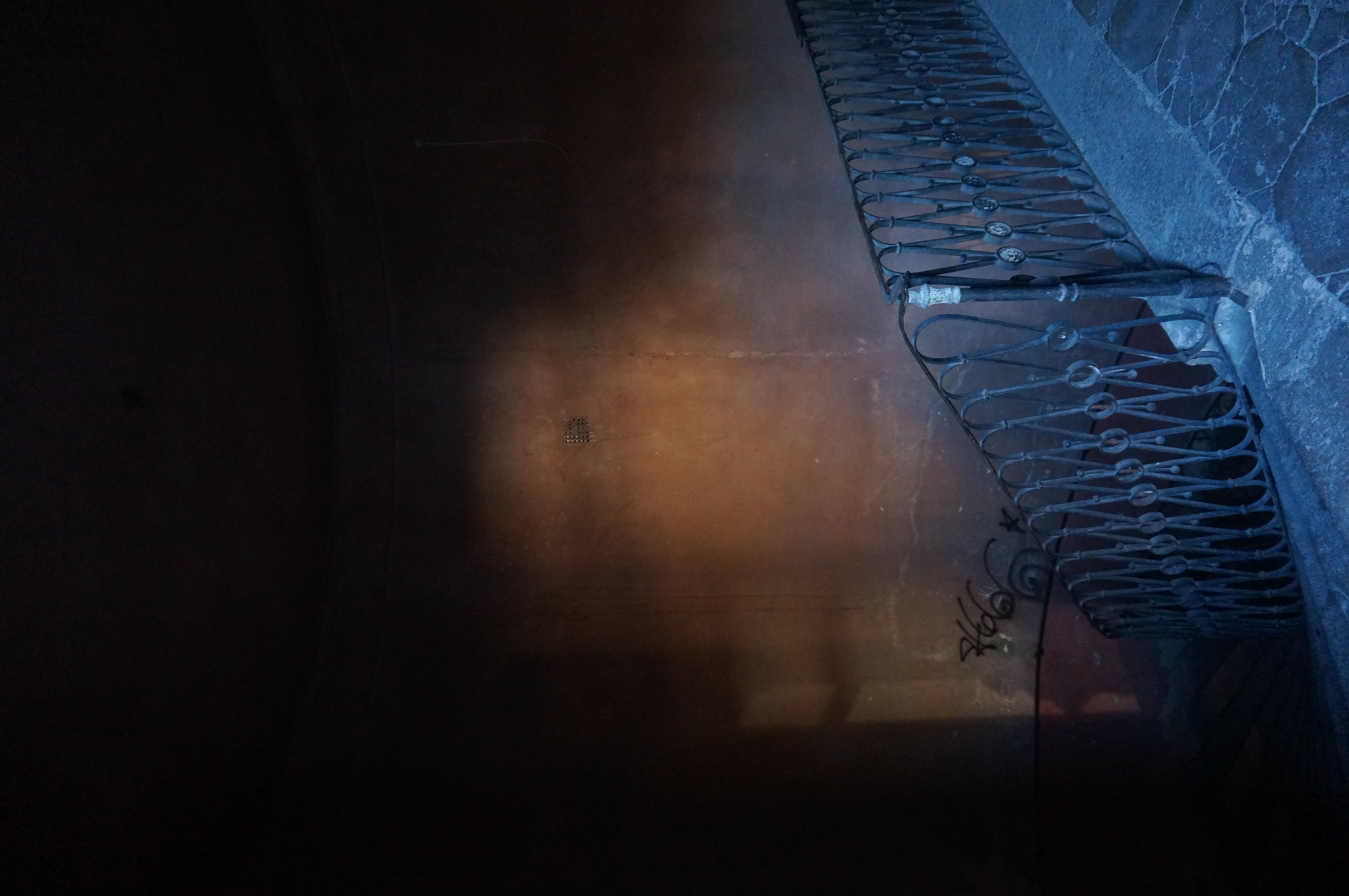 A lépcsőház előteréből macskakővel borított négyzetes belső udvarra jutunk, amelynek bal oldalán kis zöld sziget helyezkedik el, ennek „árnyékában” tárolják a kommunális és szelektív kukát, amelyek között előbbiből az épület méretéhez képest aránytalanul több van. Az udvar szemközti falának egy romos, használaton kívüli vörösmárvány kút támaszkodik, a kifolyó maszkja és a káva sérült. A kúttól jobbra egy zárt kapu – talán raktár –, balra egy átjáró nyílik, utóbbi az épület hátsó, a Kazinczy utca felé nyitott udvarába vezet, amelyet fák árnyékolnak.