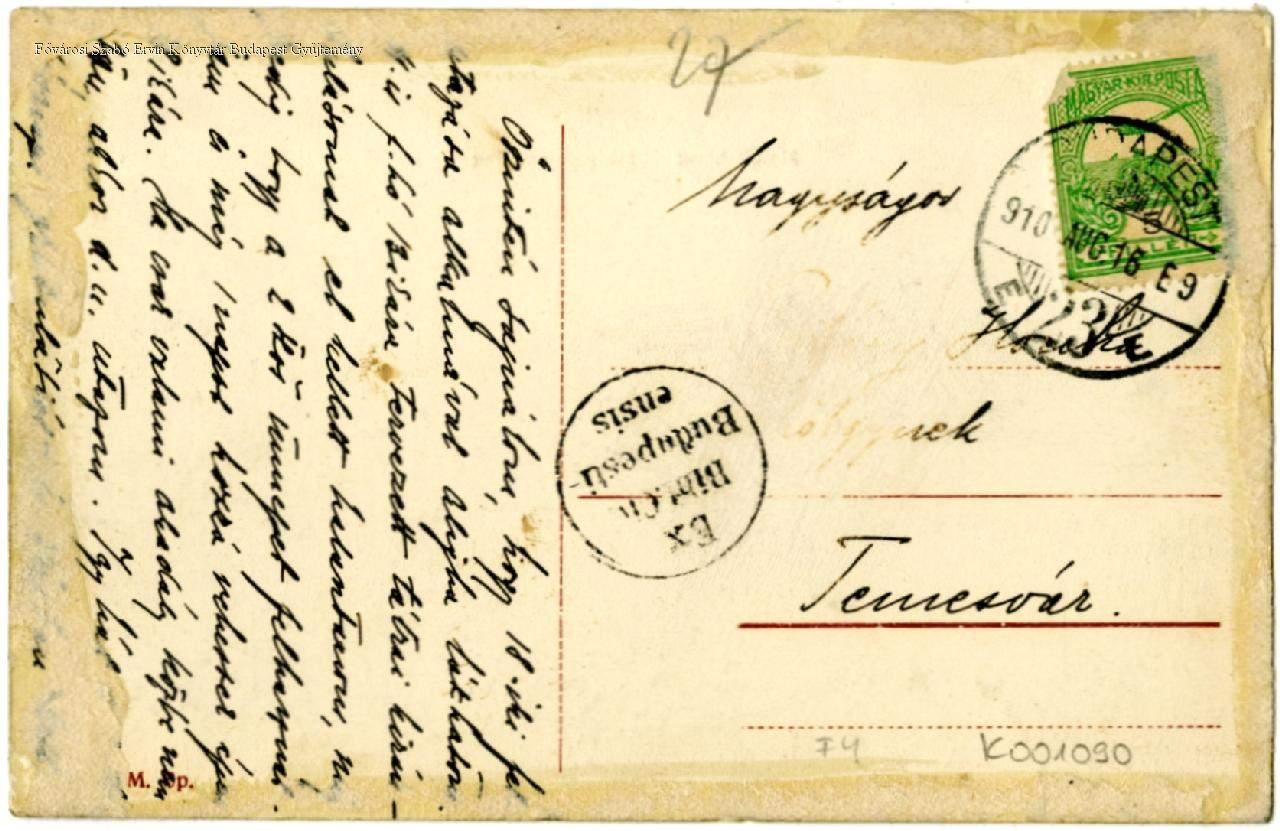 A budai hídfő felől, kivehetők a későbbi Rómer Flóris utcában sorakozó földszintes házak. Áll már az 1907-re felépült Margit krt. 5. és a szintén 1907-ben elkészült Margit krt. 7., de utóbbinak a teteje még hiányos. (Az 1909-re felépült Mecset u. 8. nincs még a képen.)