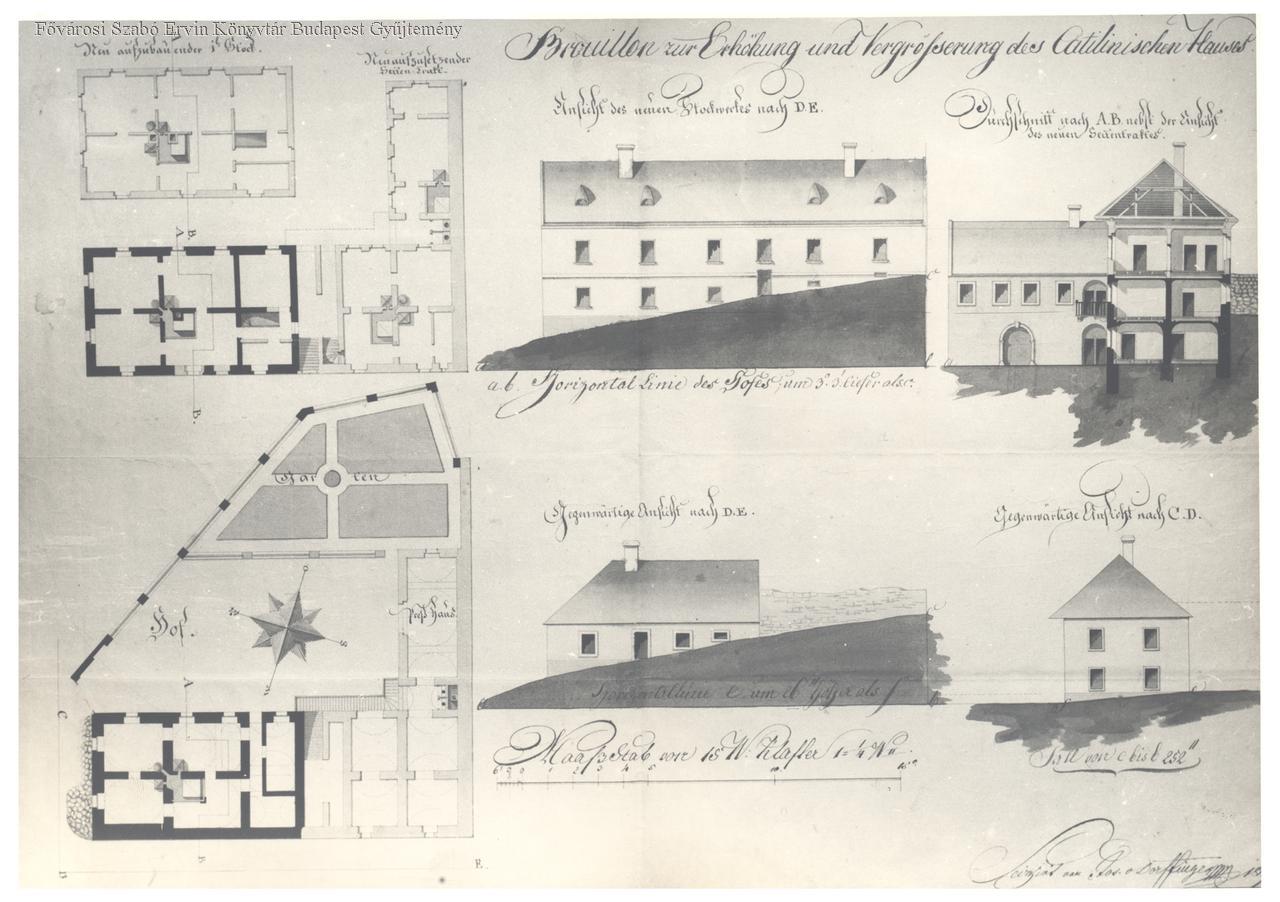lakóépület, udvar, épületbővítés, építészeti terv, épületkép, 1800