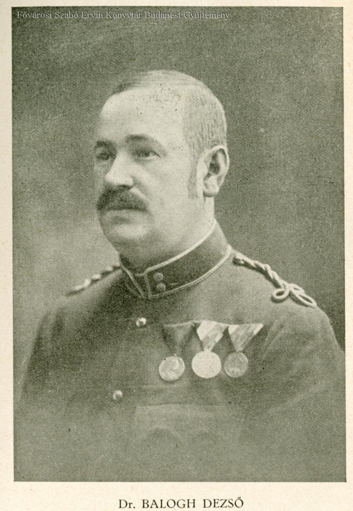 dr. Balogh Dezső a budapesti hivatásos tűzoltóság főorvosa, a busapesti Önkéntes tüzoltóság alparancsnoka, a Magyar Országos Tűzoltó-Szövetség elnökségének tagja