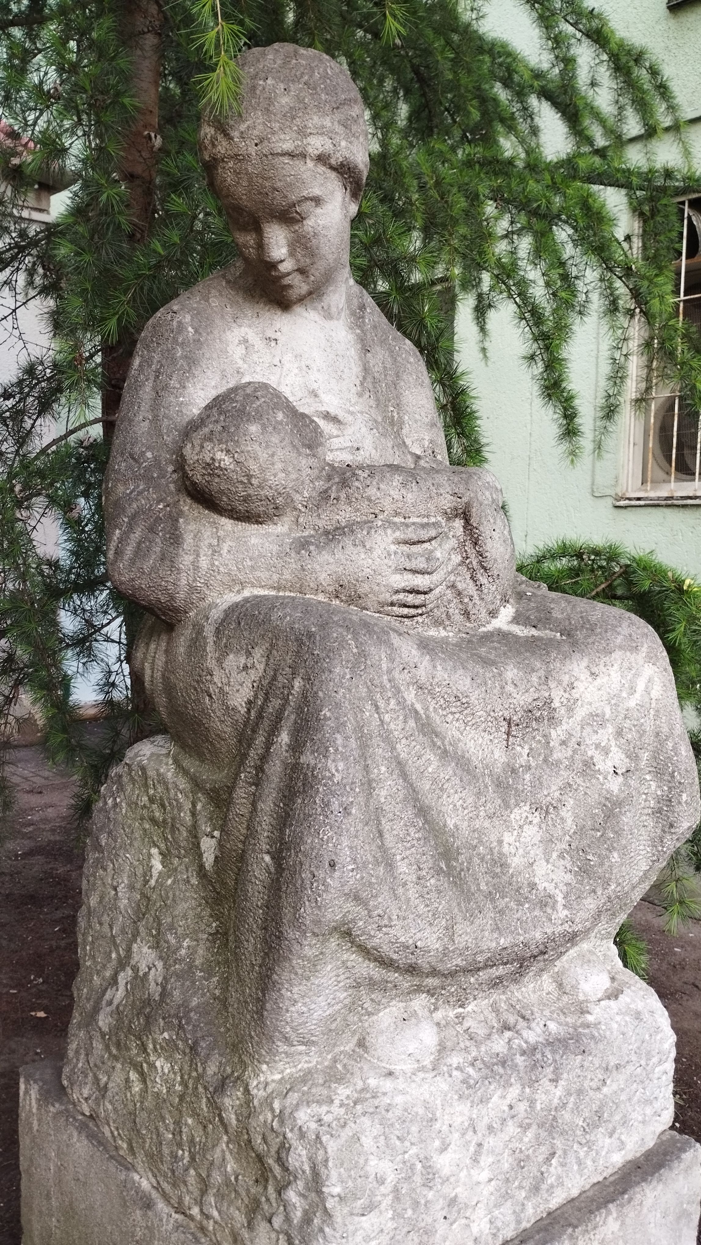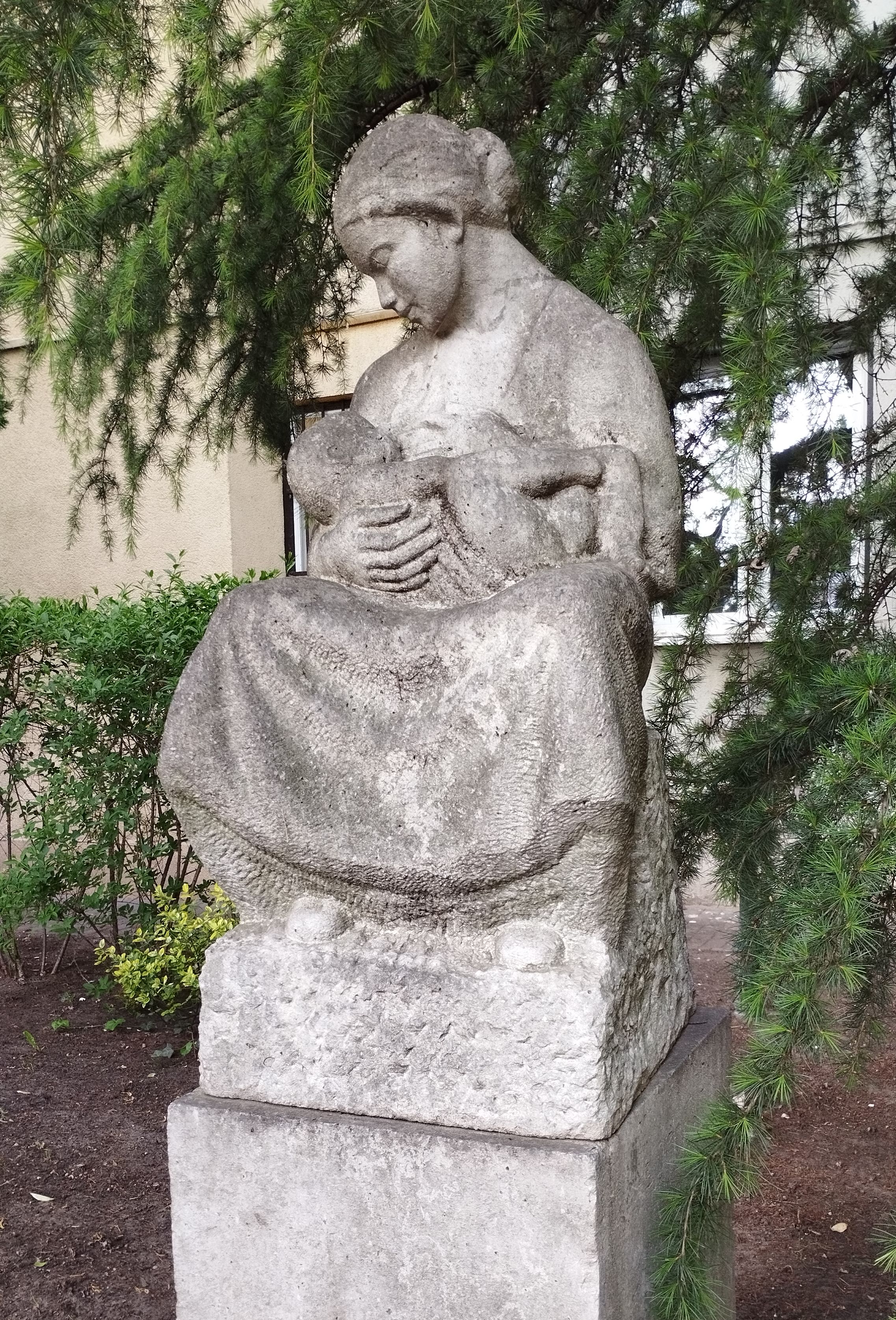 Medgyessy Ferenc (1881-1958) Szoptató anya című mészkő szobrát 1962-ben állították fel a Gaál Imre Galéria belső kertjében. A kb. egyméteres posztamensen álló szobor egy gyermekét szoptató anyát ábrázol. A művész a szobor első változatát még 1917-ben, az első világháború alatt feleségéről, a lengyel Maria Kienich-ről és közös kislányukról mintázta. Medgyessy 1917 és 1955 között méretben és anyagban az anya-gyermek téma számos változatát készítette el. Műveit fehér és vörös márványból, gipszből, bronzból, de még terrakottából is megformálta. A művészettörténészek szerint életműve egyik legfontosabb darabja ez a szobor, mert a szoptató anya az intimitás és a bensőségesség különleges összhangját ábrázolja. Több helyen megtalálható az országban ez a szobor, a Gellérthegyen, a debreceni Nagyerdőn és Szolnokon, a megyei Hetényi Géza Kórház és Rendelőintézet Hősök téri épületének (egykori SZTK) udvarán is áll egy belőle. A mű érdekessége, hogy ennek a szobornak a kőből készített változata díszítette az 1983-ban kibocsátott zöldszínű ezerforintos bankjegy hátoldalát.