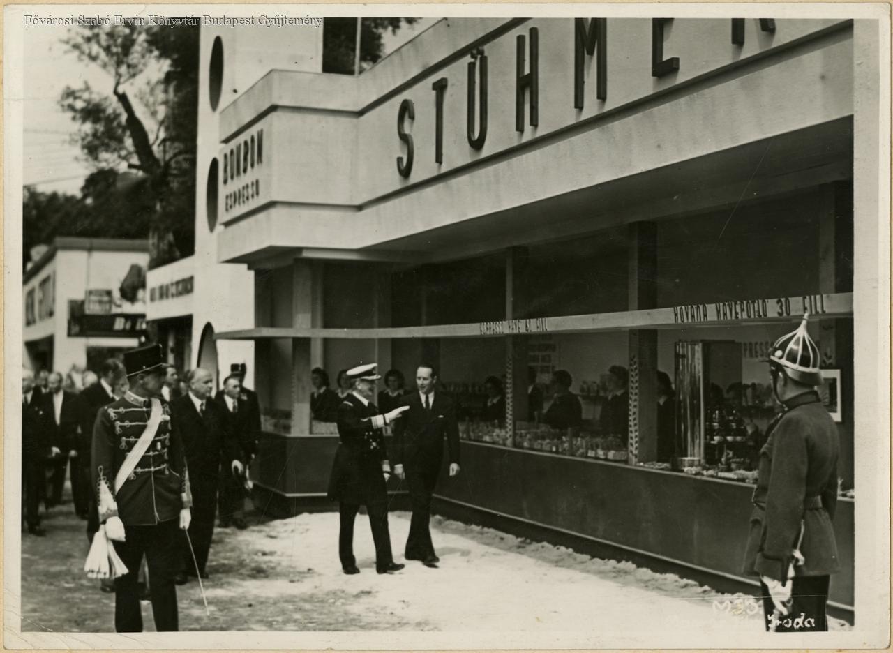 [Horthy Miklós a BNV-n] a kormányzó és Szendy Károly polgármester a Stühmer cég pavilonja előtt /