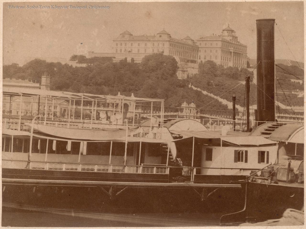 [Kilátás a Várra, előtérben hajóállomás] K. Burg und Burgbazar
