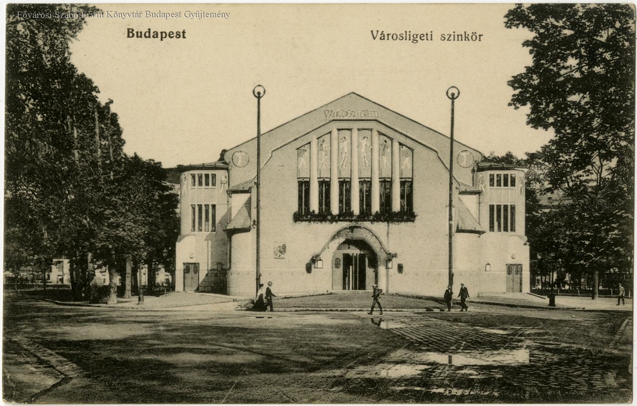 színház, operett, revü, épületdíszítés, szecesszió, épületkép, képes levelezőlap, 1910 körül, századforduló