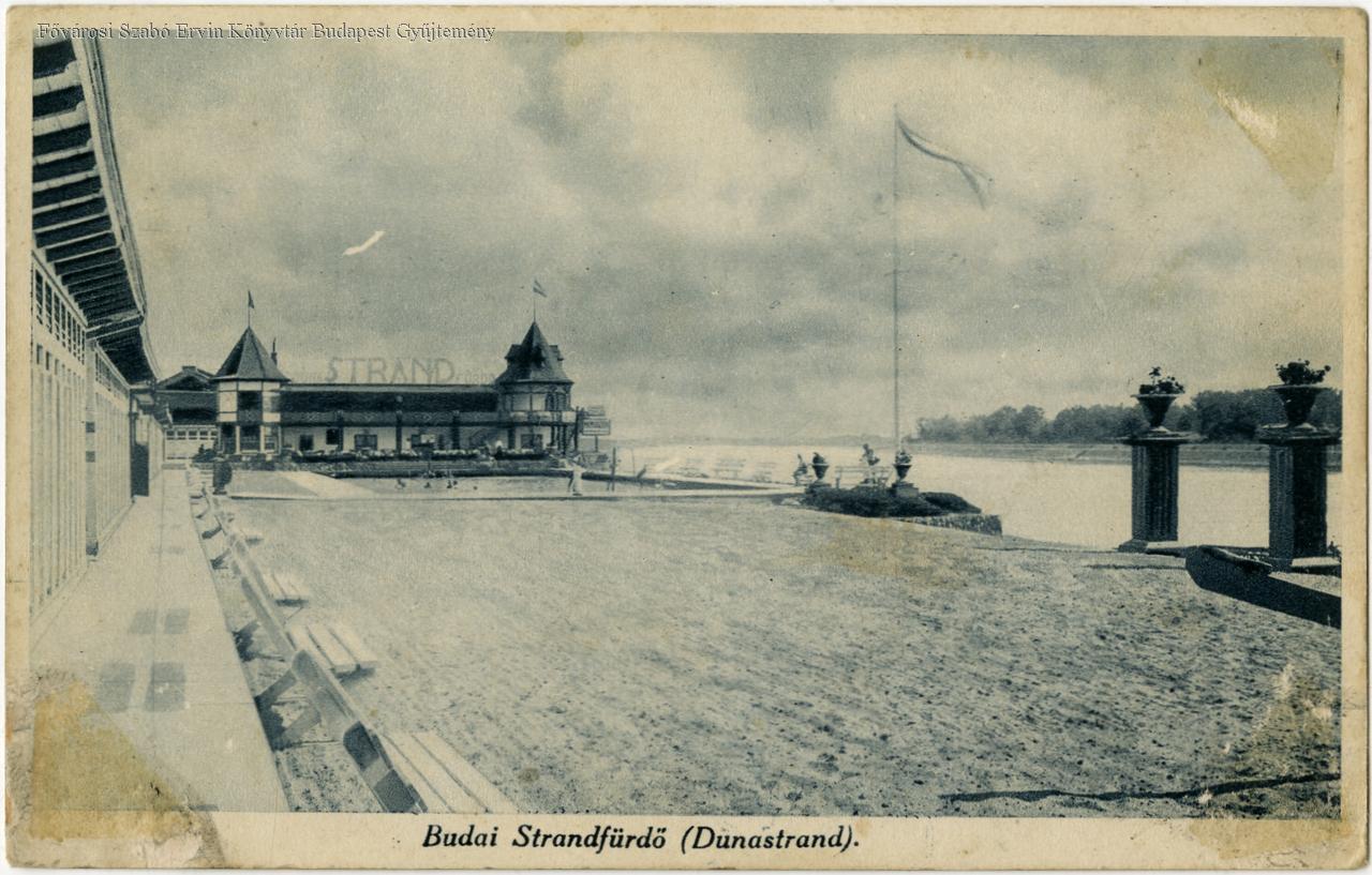 képes levelezőlap, strandfürdő, szabadtéri fürdő, homok, 1920-as évek