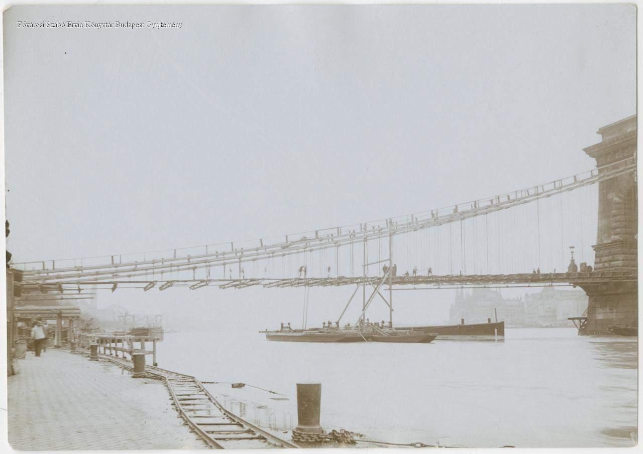 A Lánchíd átépítése, vasszerkezetének megerősítése. Teljes rekonstrukció: 1914. február 3-tól 1915. november 26-ig.